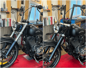 Es gibt gerade viel zu tun; von Service bis Reparatur. Unter anderem dieser Lenkerumbau samt Gabelcovern.